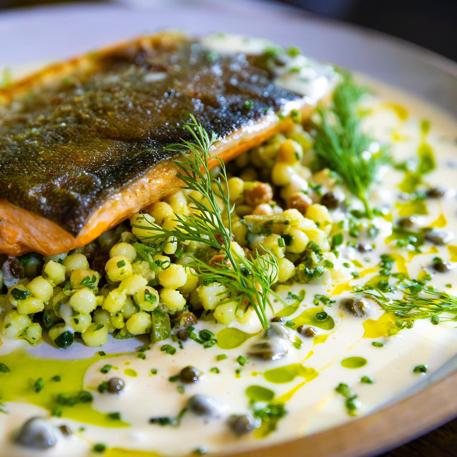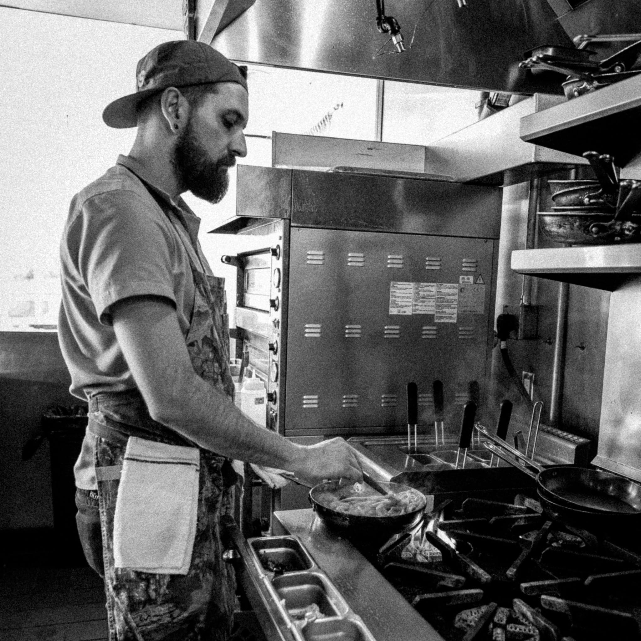 Drew’s cooking style is rooted in honoring ingredients first and foremost. Drawing inspiration from his Midwest upbringing, he approaches food with a respect for seasonality, simplicity, and the hardworking spirit of local food culture. His menus often take classic dishes and reimagine them with a unique, slightly funky edge — layering bold flavors, unexpected textures, and thoughtful technique while still keeping the soul of the original intact.